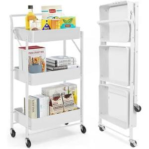 キッチンワゴン キッチン収納カート 収納ワゴン 幅44*奥行30*高さ89.5cm 折りたたみ式 3段 キャスター付き ワゴン 移動式 ハンドル