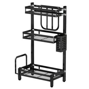 調味料収納ラック 3段 組立必要 スパイスラック 台所 スライド式 調味料いれ おしゃれ ナイフホルダー まな板ラック付き 防錆 食器 収納ラック 食器置き場