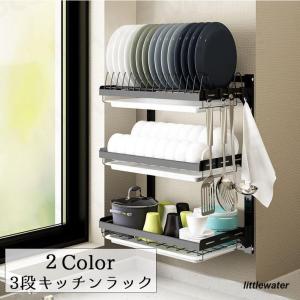 キッチン雑貨 水切りラック キッチンラック 3段 流し台 スペース 水切りトレー フック カゴ かご 頑丈 水切りかご 大容 黒 ブラックbiu