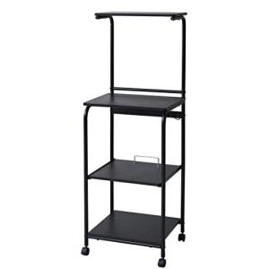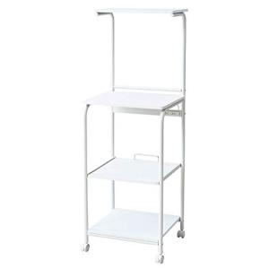 [山善] レンジラック 幅48×奥行41×高さ141cm スライド棚 2口コンセント ストッパー付きキャスター レンジ台 ラック トースターラッ