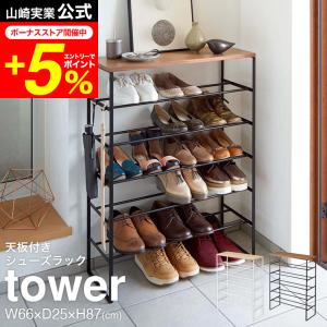 tower 山崎実業 天板付きシューズラック 6段 タワー 公式 ホワイト/ブラック 3369 3370 送料無料 シンプル 玄関収納 靴箱 下駄箱 ラック シューズラック