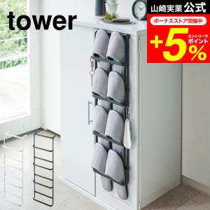 tower 山崎実業 下駄箱扉&引っ掛け式スリッパラック タワー インテリア 公式 ホワイト/ブラック 4894 4895 送料無料 玄関 玄関収納