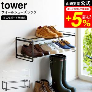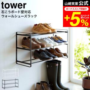 tower 山崎実業 石こうボード壁対応ウォールシューズラック タワー 公式 2段ホワイト/ブラック 4504 4505 送料無料 / 靴箱 玄関 収納 靴置き 下駄箱 省スペース