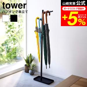 tower 山崎実業 引っ掛けアンブレラスタンド タワー 傘立て 公式 ホワイト/ブラックスリム 玄関収納 折り畳み傘収納 フック付き 送料無料