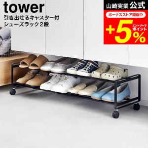 tower 山崎実業 引き出せるキャスター付きシューズラック タワー シューズ 公式 2段 送料無料 1624 1625ホワイト ブラック / 玄関 靴収納