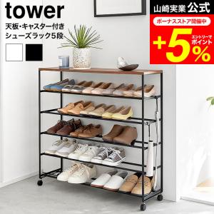 tower 山崎実業 天板付きシューズラック タワー 5段 キャスター付 W90 公式 1465 1466 ホワイト ブラック 送料無料 / 下駄箱 靴箱 靴棚 玄関収納