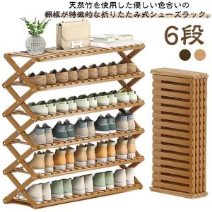 組立不要 シューズラック 6段 下駄箱 折りたたみ式 完成品 玄関収納 天然竹製 シューズ収納 オープンラック 省スペース 安定感 竹素材 玄関 キッ