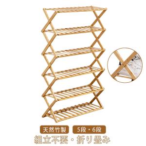 シューズラック 組立不要 竹製 5段 6段 折りたたみ 完成品 靴箱 下駄箱 靴棚 靴 収納 スリム 下足箱 折畳式 ラック 靴ラック コンパクト 収
