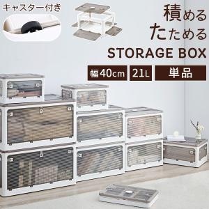 折りたたみコンテナ 幅40 単品 フタ付きケース 乾燥材入れ 衣類収納ボックス 大容量 コンテナボックス 窓付 5面開き 透明 おしゃれ 重ねる収納