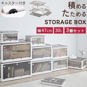 折りたたみコンテナ 幅47 3個セット フタ付きケース 乾燥材入れ 衣類収納ボックス 大容量 コンテナボックス 窓付 5面開き 透明 おしゃれ 重ねる収納