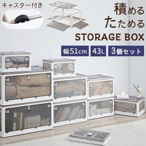 折りたたみコンテナ 幅51 3個セット フタ付きケース 乾燥材入れ 衣類収納ボックス 大容量 コンテナボックス 窓付 5面開き 透明 おしゃれ 重ねる収納