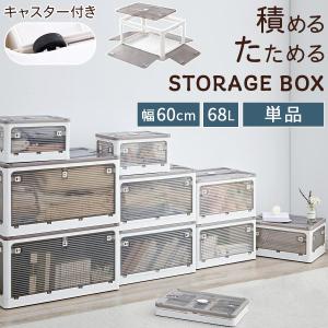 折りたたみコンテナ 幅60 単品 フタ付きケース 乾燥材入れ 衣類収納ボックス 大容量 コンテナボックス 窓付 5面開き 透明 おしゃれ 重ねる収納