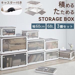折りたたみコンテナ 幅60 3個セット フタ付きケース 乾燥材入れ 衣類収納ボックス 大容量 コンテナボックス 窓付 5面開き 透明 おしゃれ 重ねる収納