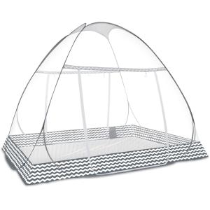 蚊帳 ワンタッチ 底面付き かや テント式 全方位ガード キャンプ式 モスキートネット 夏( グレー, 幅120cmx奥行200cm)