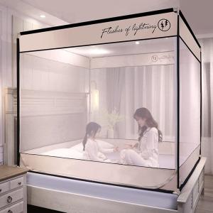 蚊帳 かや テント式 ワンタッチ 2ドアタイプ 底生地付き 密度が高い 持ち運べる 収納便利(ホワイト, 150x200x145)