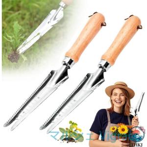草むしり道具 雑草抜き 根こそぎ 5in1多機能ツール 目盛り付き 防錆 ステンレス 木製ハンドル 片手用 除草道具 芝生 庭 農場 園芸用品 1 PCS