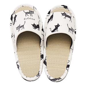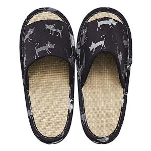 萩原 ハギハラ 国産い草スリッパ モノネコ Mサイズ 約26cm ブラック 81945100(2583057)