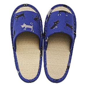 萩原 ハギハラ 国産い草スリッパ モノネコ Mサイズ 約26cm ブルー 81945120(2583061)