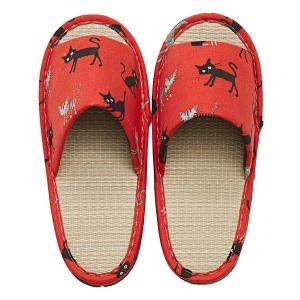 萩原 ハギハラ 国産い草スリッパ モノネコ Mサイズ 約26cm レッド 81945130(2583063)