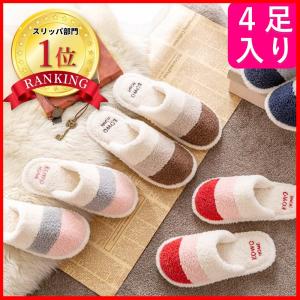 \ヤフー1位/\4足セット/\フワフワ気持ちい/ ストライプ スリッパ 洗える おしゃれ 暖かい ルームシューズ レディース メンズ 洗濯 来客 室内 トイレ 夏 冬