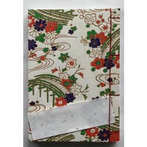 罫線入り和綴じ帖 A6判(縦書き5行罫線・奉書紙)表紙:白ギラ(貝殻粉末)梅柄