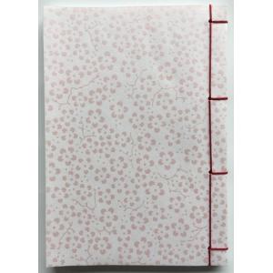 罫線入り和綴じ帖 A6判(縦書き5行罫線・奉書紙)表紙:桃ギラ(貝殻粉末)梅