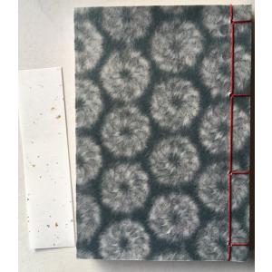 罫線入り和綴じ帖 A6判(縦書き5行罫線・奉書紙)漉き模様和紙 菊唐草 紺色