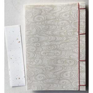 罫線入り和綴じ帖 A6判(縦書き5行罫線・奉書紙)表紙:白ギラ(貝殻粉末)観世水