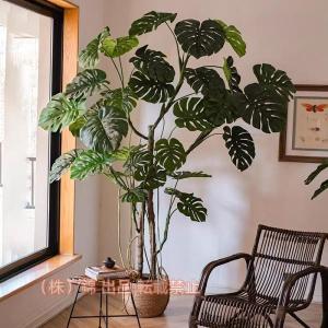 人工観葉植物 フェイクグリーン モンステラ 西瓜の葉 鉢植え 人工葉 水やり不要 枯れない 株式会社錦 オフィス用 ダイニング 撮影 開店祝い リアル