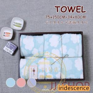 バスタオル 洗面タオル 2枚セット 75x150cm+34x80cm 雲 雲柄 3色 お風呂 洗面 プレゼント お祝い ギフト 吸水性 柔らかい