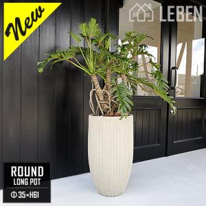 【◆ご購入特典あり】プランター 大型 ガーデニング用品 Φ35×高さ61cm 円形 ラウンド ロング ポット ベージュ 植木鉢 おしゃれ 多角形 ファイバークレイ
