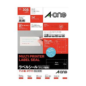 エーワン 72214(ラベルシール/プリンタ兼用/マット紙/ホワイト/A4/14面/四辺余白付)