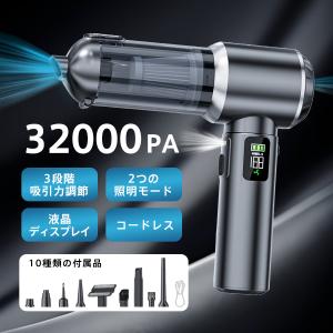 ハンディークリーナー 掃除機 コードレス 3段階調節 32000pa 強力吸引 液晶モニター 吹き付け 家庭用 車載 USB充電式 静音 空気入れ 爆買
