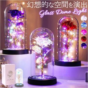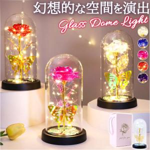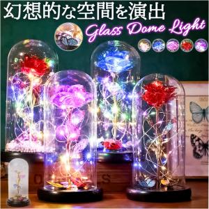 ガラスドーム フラワー LED 通販 花 ライト インテリア インテリアライト 卓上 飾り おしゃれ バラ キラキラ 枯れない 造花 置物 オブジェ 贈り物 ガラスドーム