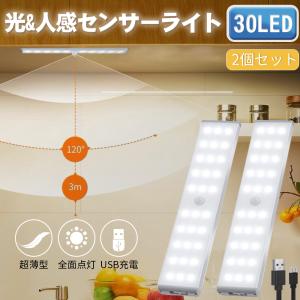 人感センサーライト 2個セット 30LED 室内 玄関 USB充電式 明るい 薄型 LED 照明 クローゼットライト LEDライト 屋内 廊下 小型 ランタン 防災グッズ A100