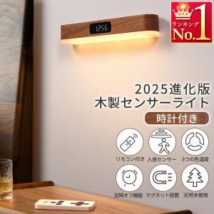 人感センサーライト 木製 デスクライト 時計付き オフタイマー リモコン USB充電式 無段階調光 3色切り替え 化粧鏡 学習机 壁掛け マグネット設置