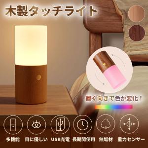タッチライト 木製 ナイトライト usb充電 重力センサー 色変化 タッチセンサー 授乳ライト ベッドサイド ランタン プレゼント 暖色 カラフル 二色