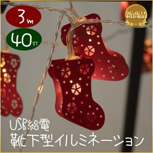 LEDイルミネーション クリスマス 靴下モチーフ USB給電タイプ 暖色系 メリークリスマス【屋内用】
