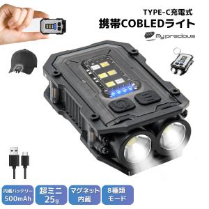 LED ミニ ワークライト ポケットマグネット式ミニライト 投光器高輝度 ダブルLED+COB 小型かつ超軽量 耐衝撃 8発光パータン SOS発信 緊急災害用 USB 充電式