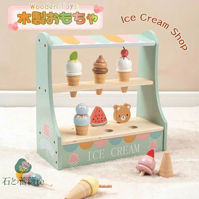 送料無料 おままごと おもちゃ 木製 アイスクリーム ケーキ屋さん ice cream 室内&室外遊び 知育玩具 学習 バースデー 誕生日 クリスマス プレゼント 入園祝い 出産祝い 親子遊び 保育所・児童館用品 お店屋さんごっこ ままごと遊び 楽天海外通販