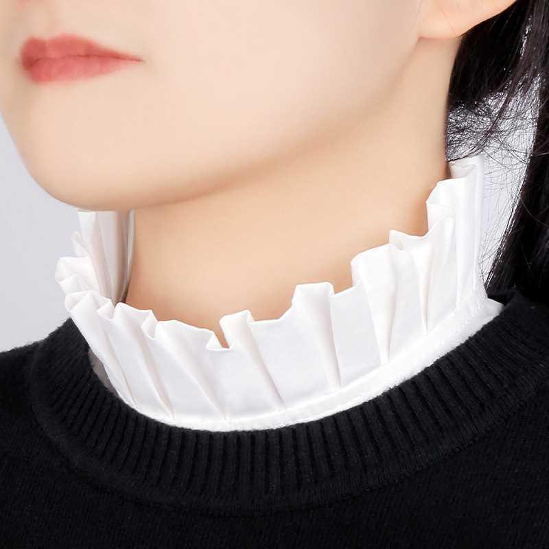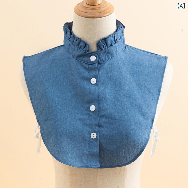 フェイクカラー メンズ レディース デニム プリーツ フリル コットン 暖か 装飾 インナー アウター 襟 白 黒 ネイビー エレガント カジュアル キュート モード ミニマル 普段使い 通勤 春