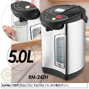 電気ポット 電気保温ポット 5L 大容量 シンプル カッププッシュスイッチ 再沸騰モード 一目でわかる水位窓 左右回転 ハンドル付き 給湯ロック機能 RM-242H