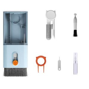 WG121 AHASTYLE マルチ クリーニング キット 10in1 収納型ホコリ、垢除去 パーツ収納 携帯便利SIM取り出しピン ミニブラシ 青