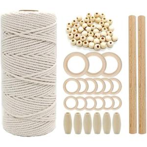 マクラメヤーン 糸 ロープ 編み 織り 編み物 コットン 紐 diy 綿 イト(オフホワイト, マクラメ糸3mm100m巻+キット)