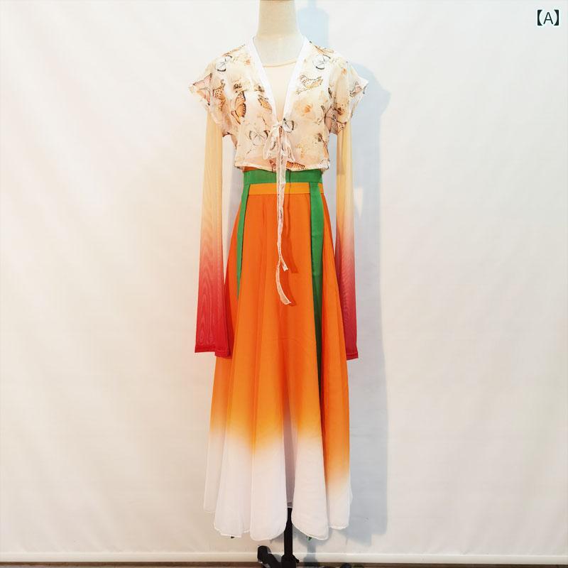パフォーマンス グラデーション ステージ レディース ロングスカート チャイナ風 エレガント