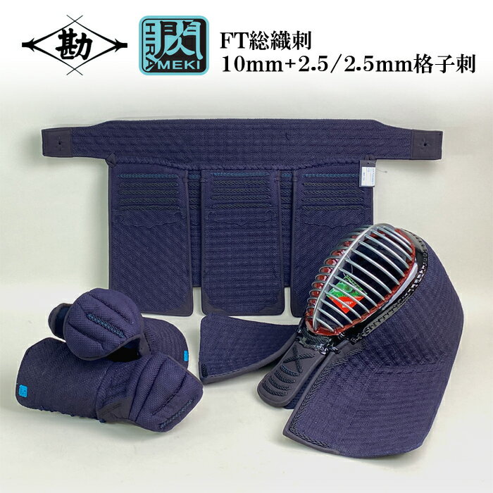 【NEW】【 閃 FT 】 松勘 総織刺 セット 胴なし 剣道防具 10mm+2.5/2.5mm 格子刺 超実戦向け 大人用 子供用 面 甲手 垂 剣道具 閃き 春日武道具 閃シリーズ ヘリ人口紺革 FTモデル