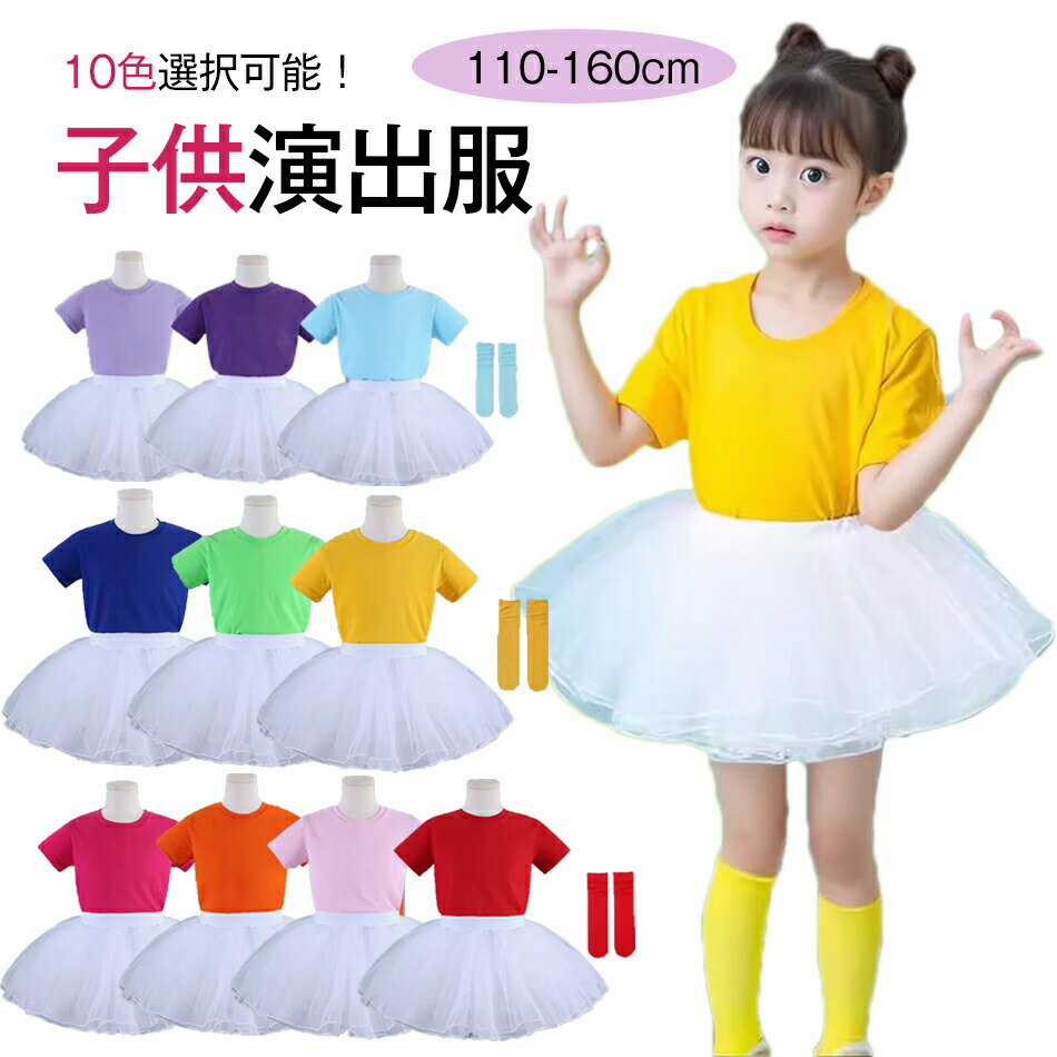 100%綿 10色選択可能 (上着+スカート+靴下) 110-160cm ダンススカート