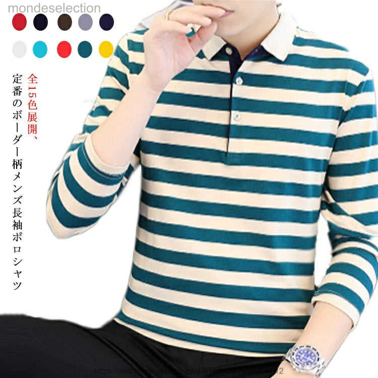長袖 メンズ シニア ゴルフウェア ボーダー柄 ラガーシャツ トップス シャツ tシャツ 部屋着 刺? カラフル 男性 紳士