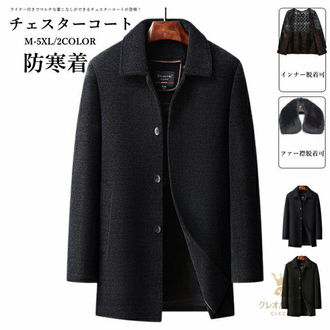 L-4XL チェスターコート メンズ ファー襟付き インナー付き 脱着可 裏ボア 厚手 ジャケット ステンカラーコート コート