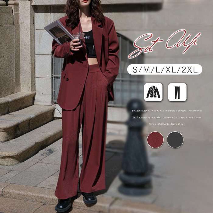 スーツ ママスーツ 長袖 パンツ ワイド ロング ハイウェスト ロングパンツ キャリア ゆったり かっこいい お洒落 入学式 卒業式 入園式 卒園式 母親 ママ 母 OL 通勤 面接 春 夏 秋 冬